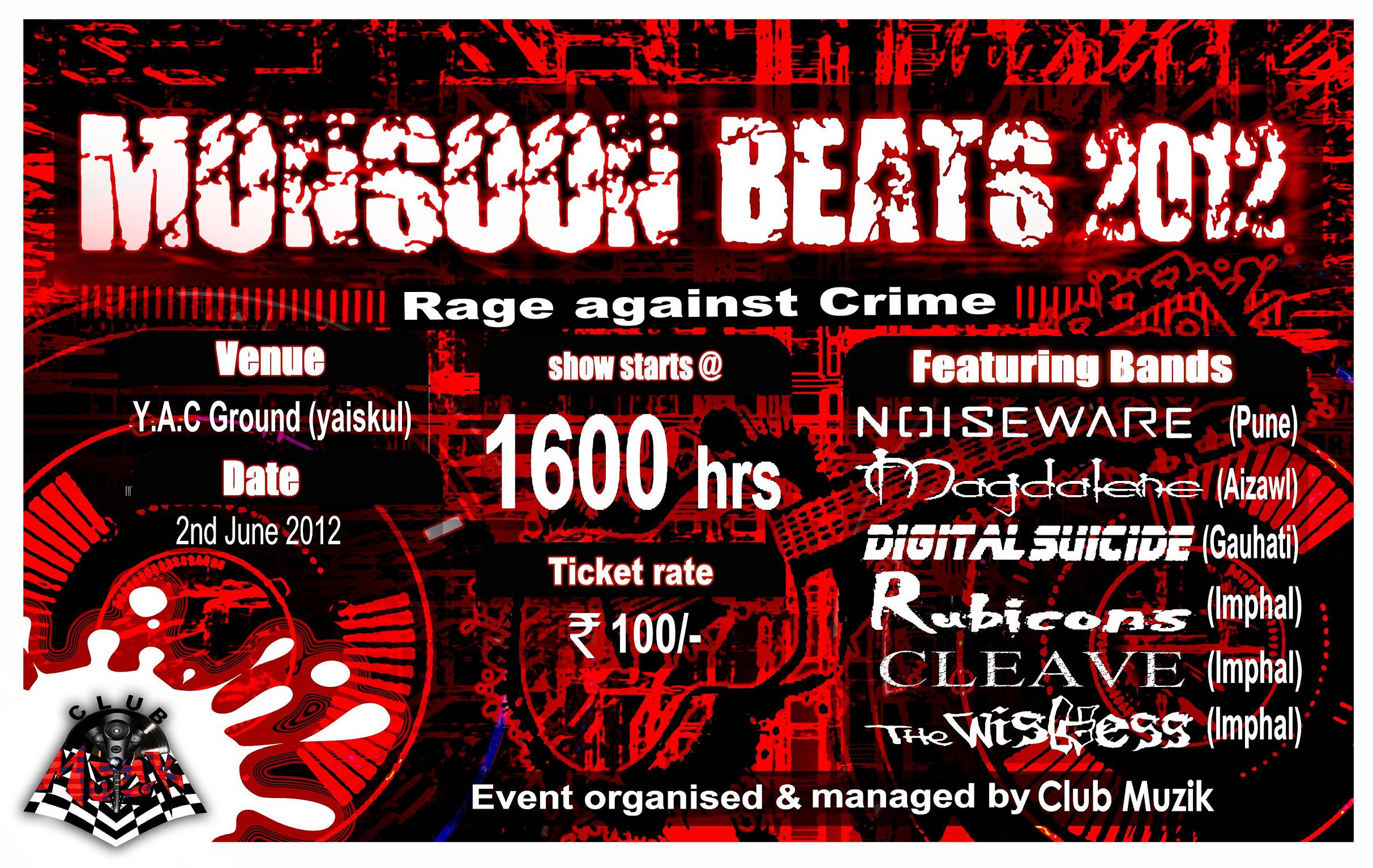 This monsoon the CLUB MUZIK is bringing a rock music fest, MONSOON BEATS featuring NOISEWARE (Pune), MAGDALENE (Aizawl), and DIGITAL SUICIDE (Guwahati) alongside CLEAVE (Imphal), RUBICONS (Imphal) and THE WISHESS (Imphal) with the theme "Rage Against Crime". The Event is a protest against the recent increase in the criminal acts […]