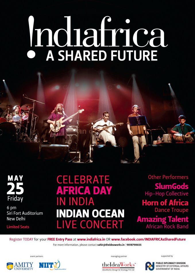 CELEBRATE AFRICA DAY IN INDIA INDIAFRICA: A Shared Future presents Indian Ocean LIVE in NEW DELHI!  To win free passes, register here Increase your chances of getting free entry by sharing the poster!   for more info click here   Other Performers: SlumGods Horn of Africa Amazing Talent   Event Partners: Amity University, NIIT Managing […]
